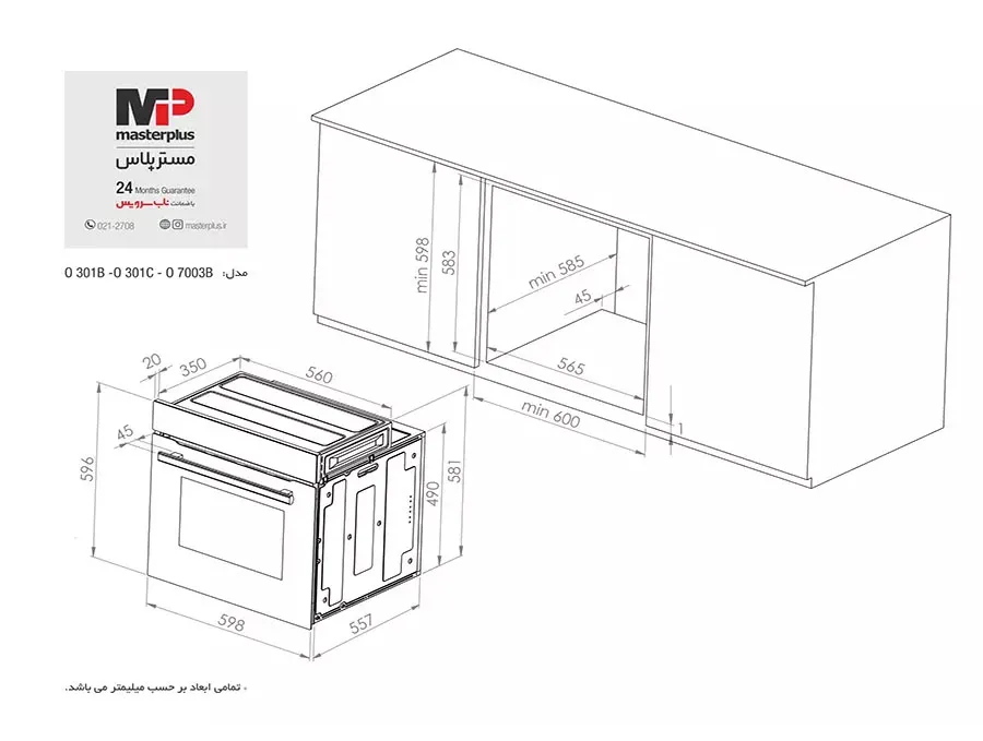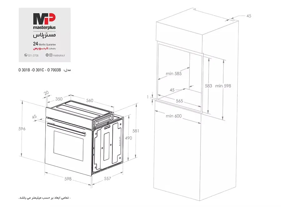 مشخصات فر مسترپلاس مدل O7003 FB توکار برقی