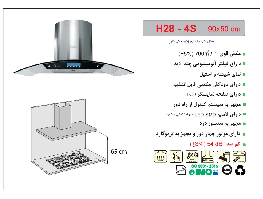 دارای دودکش مکعبی قابل تنظیم ,نمای ظاهری شیشه و استیل ,مجهز به سنسور دود |