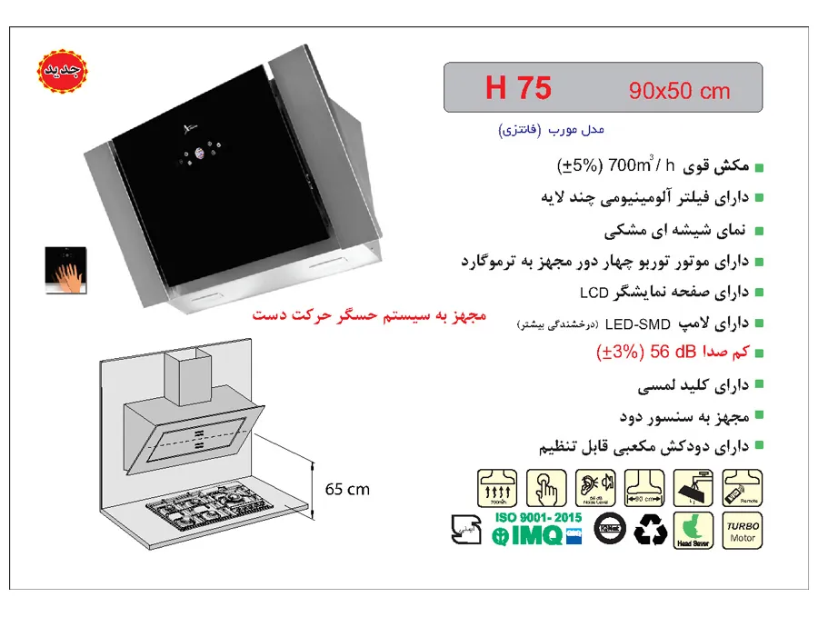 دارای دودکش مکعبی قابل تنظیم ,مجهز به سنسور دود ,مجهز به سیستم حسگر حرکت دست |
