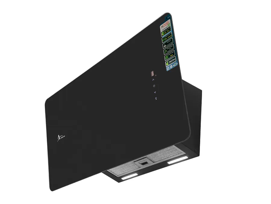 دارای دودکش مکعبی قابل تنظیم ,نمای ظاهری شیشه و بدنه مشکی |