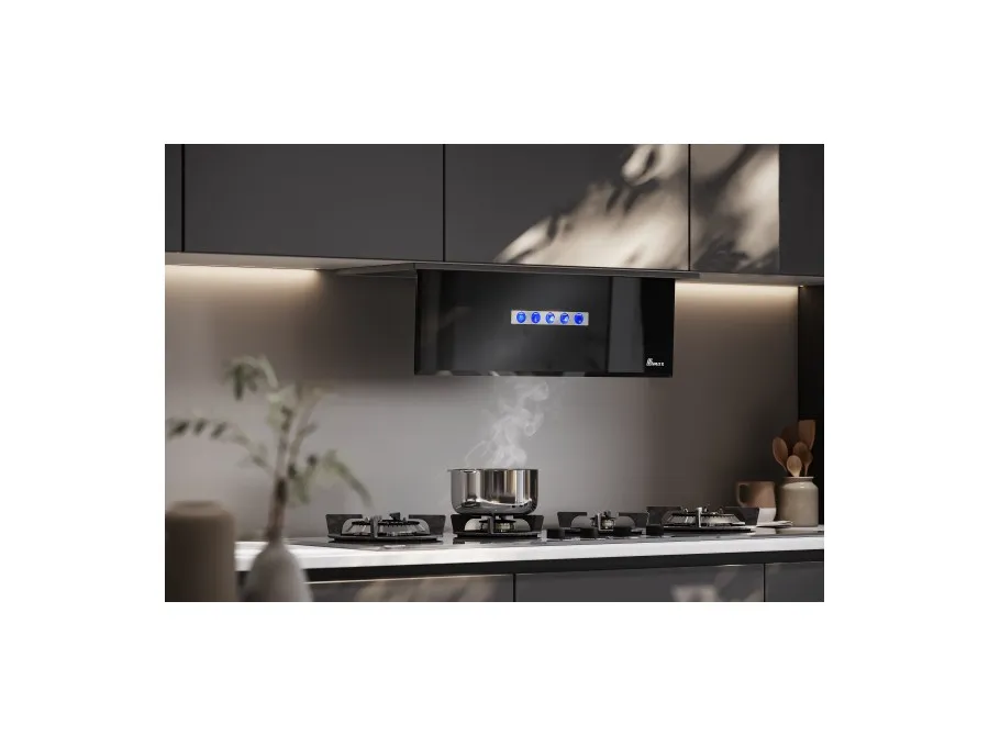 بدنه فولادی با شیشه سکوریت ,قابلیت نصب فیلتر ذغالی ,ارتفاع نصب هود از سطح کابینت 70 سانتیمتر ,سنسور تشخیص حرکت ,سنسور دود، گاز و حرارت ,مجهز به تایمر ,دارای ۲ عدد فیلتر آلومینیومی ۳ لایه ,سیستم ایمنی ترموگارد |