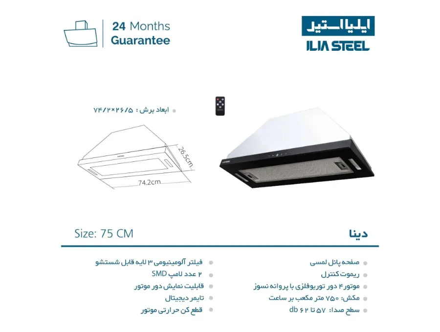 مشخصات هود مخفی ایلیا استیل مدل دینا توکار