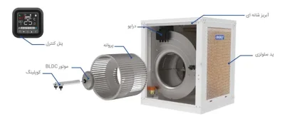 - کاهش هزینه نگهداری و تعمیرات کولر آبی انرژی با موتور BLDC مدل EC0570B سلولزی ترموستاتیک با حذف تسمه و پولی و یاتاقان