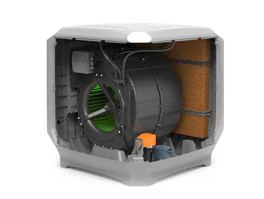 کولر پلیمری ایرومکس یکی از انواع کولر های آبی نسل جدید است که با داشتن سیستم هوشمند، علاوه بر حذف پوشال قدیمی، از سیستم تسمه و یاتاقان نیز استفاده نمیکند. کولر آبی پلیمری ایرومکس مجهز به موتور BLDC کم مصرف هست که میتواند در محیط هایی با دمای بالا کار کند و با راندمان بیشتری نسبت به کولرهای قدیمی و معمولی، هوای محیط را خنک کند.