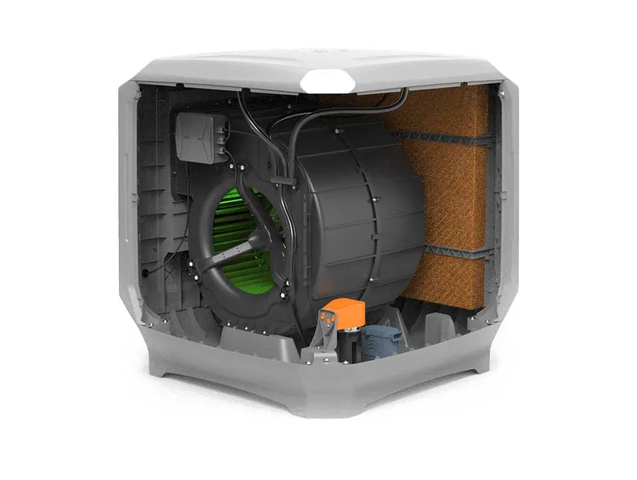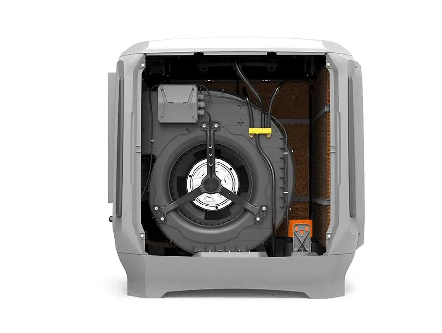 کولر پلیمری ایرومکس یکی از انواع کولر های آبی نسل جدید است که با داشتن سیستم هوشمند، علاوه بر حذف پوشال قدیمی، از سیستم تسمه و یاتاقان نیز استفاده نمیکند. کولر آبی پلیمری ایرومکس مجهز به موتور BLDC کم مصرف هست که میتواند در محیط هایی با دمای بالا کار کند و با راندمان بیشتری نسبت به کولرهای قدیمی و معمولی، هوای محیط را خنک کند.