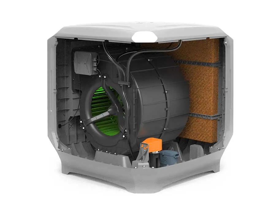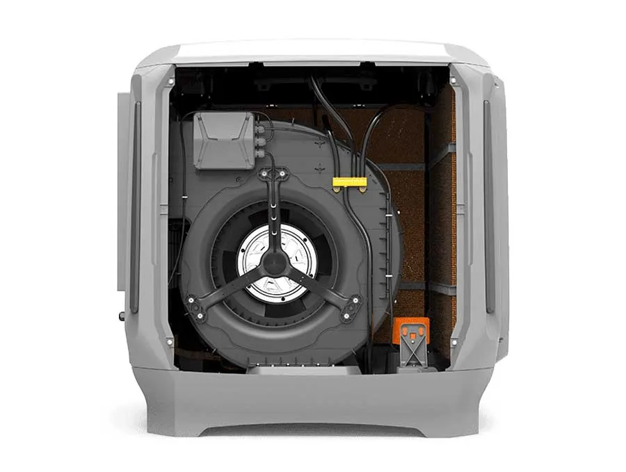 کولر پلیمری ایرومکس یکی از انواع کولر های آبی نسل جدید است که با داشتن سیستم هوشمند، علاوه بر حذف پوشال قدیمی، از سیستم تسمه و یاتاقان نیز استفاده نمیکند. کولر آبی پلیمری ایرومکس مجهز به موتور BLDC کم مصرف هست که میتواند در محیط هایی با دمای بالا کار کند و با راندمان بیشتری نسبت به کولرهای قدیمی و معمولی، هوای محیط را خنک کند.