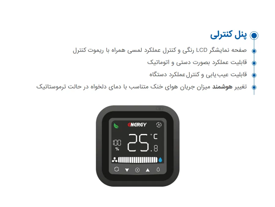 - قابلیت تنظیم اتوماتیک دور فن بر حسب فرمان از دمای محیط