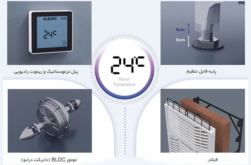 ابعاد دهانه خروجی هوا (cm) : 50*50 ,میزان صدا : کمتر از 60 دسی بل |