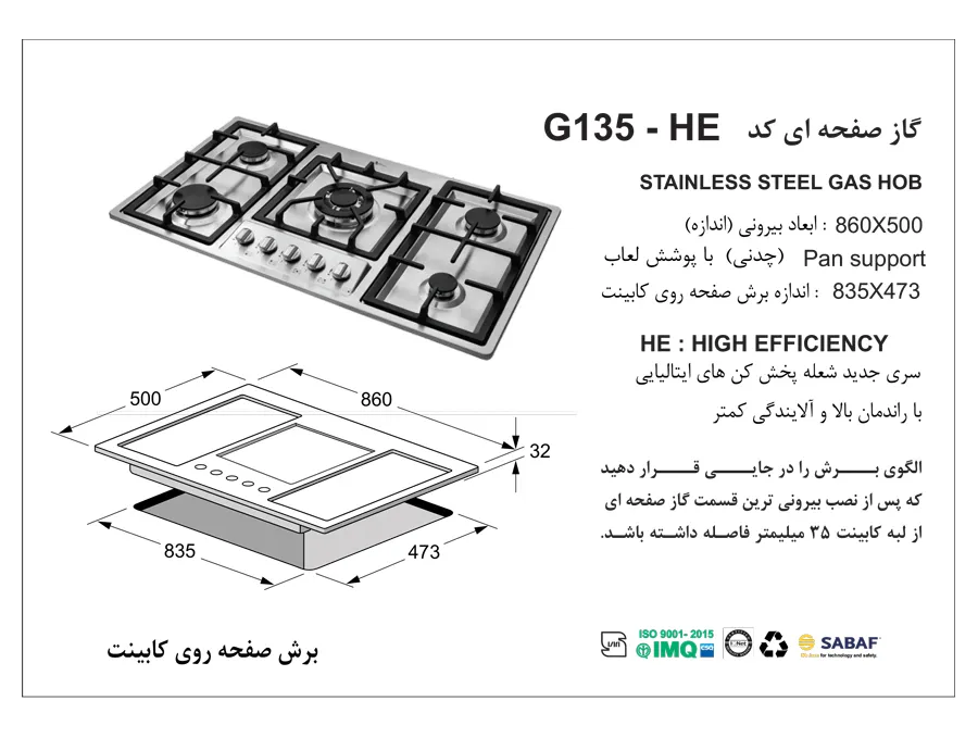 دسته: گاز رومیزی, گاز اخوان, گاز استیل, گاز پنج شعله