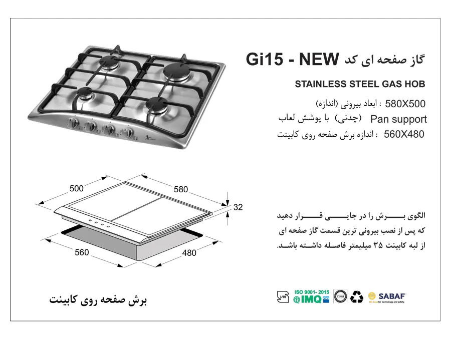 ابعاد گاز رومیزی |