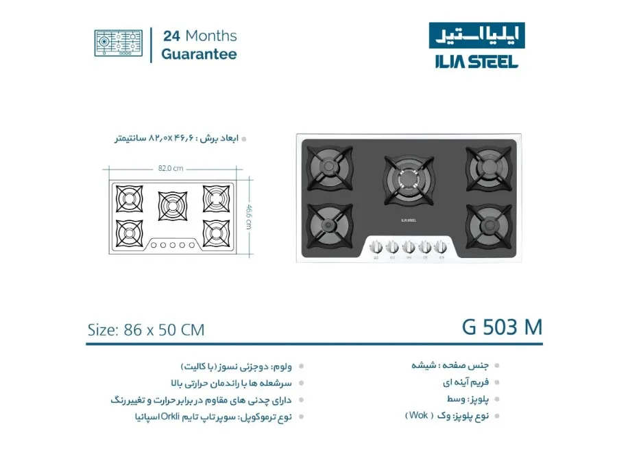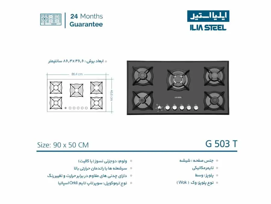 مشخصات اجاق گاز ایلیا استیل مدل G503 رومیزی