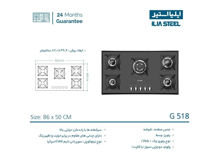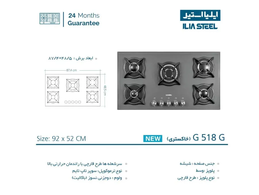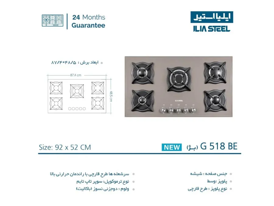 مشخصات اجاق گاز ایلیا استیل مدل G518 رومیزی