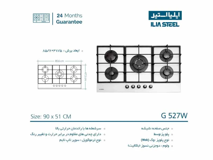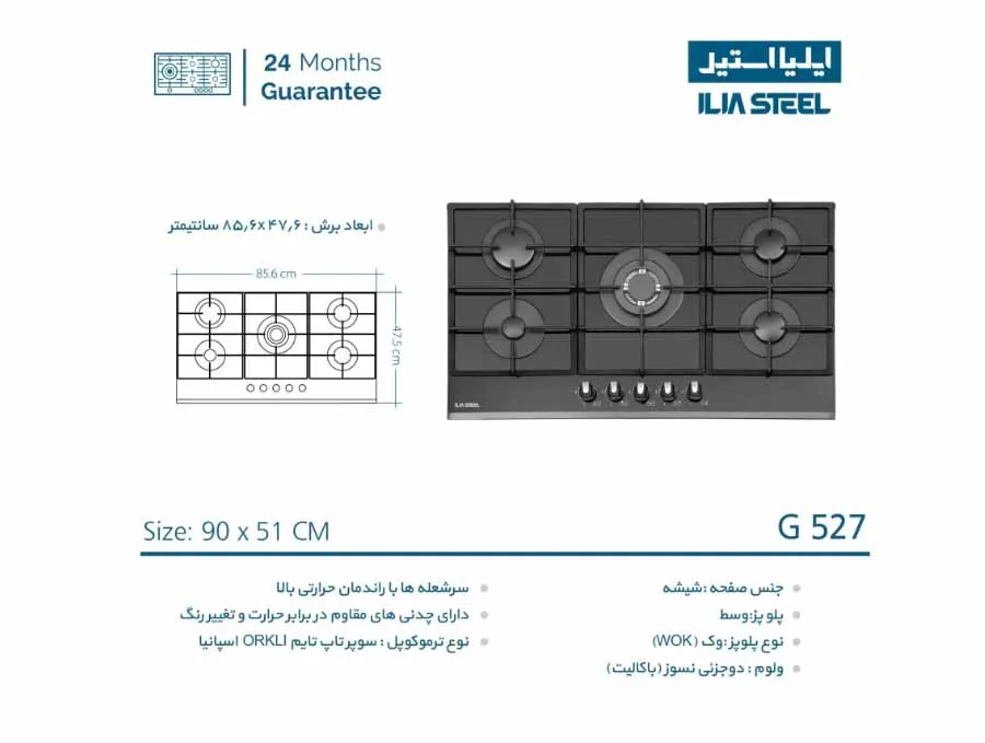 مشخصات اجاق گاز ایلیا استیل مدل G527 رومیزی