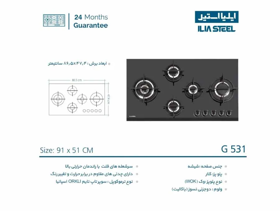 مشخصات اجاق گاز ایلیا استیل مدل G531 رومیزی
