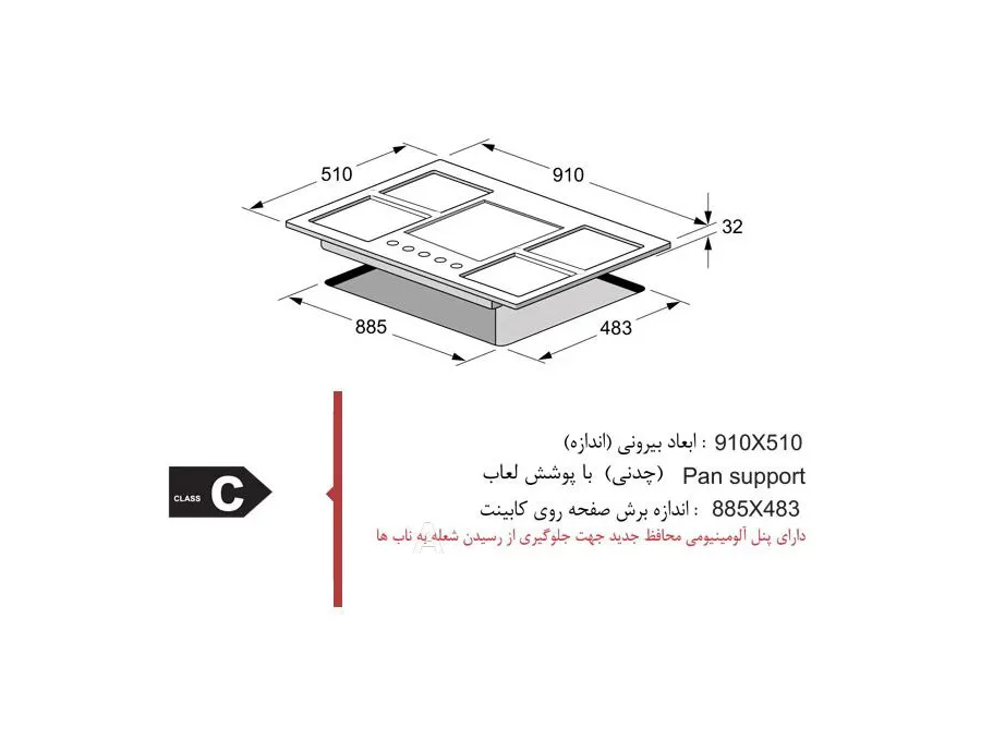 510×910 میلی متر |