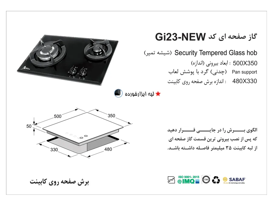 ابعاد گاز رومیزی |