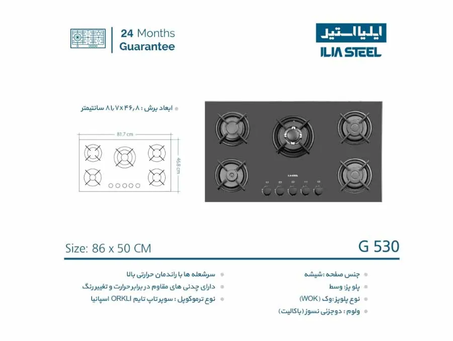 مشخصات اجاق گاز رومیزی ایلیا استیل مدل G530