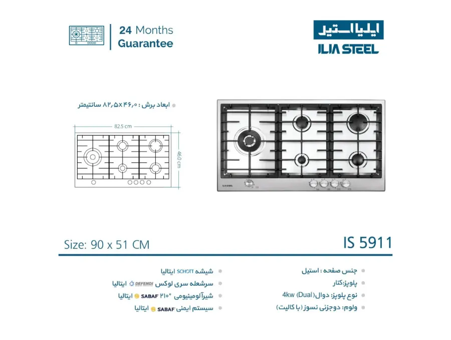 مشخصات اجاق گاز رومیزی ایلیا استیل مدل IS5911