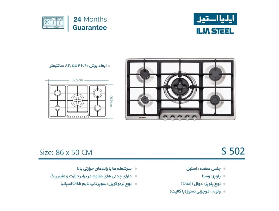 مشخصات اجاق گاز رومیزی ایلیا استیل مدل S502
