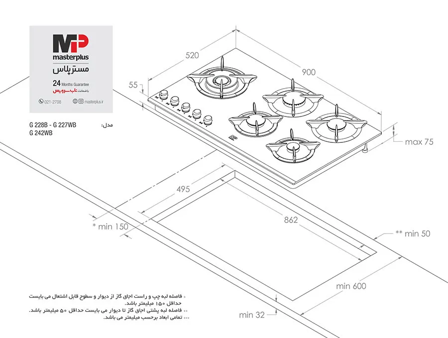 مشخصات اجاق گاز رومیزی مسترپلاس مدل G228B