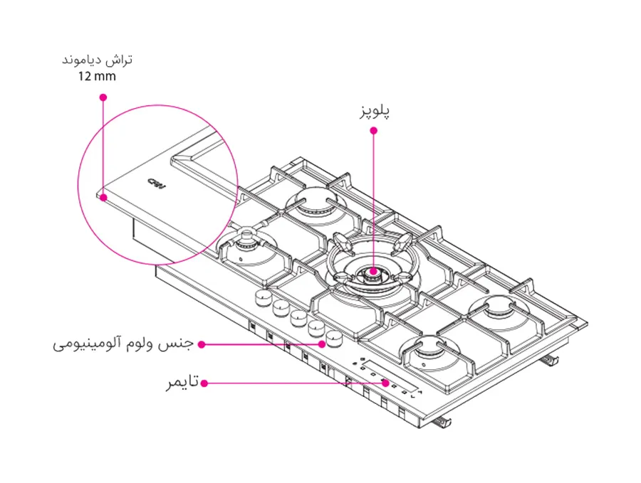 دسته: گاز رومیزی, گاز پنج شعله, گاز شیشه ای, گاز کن