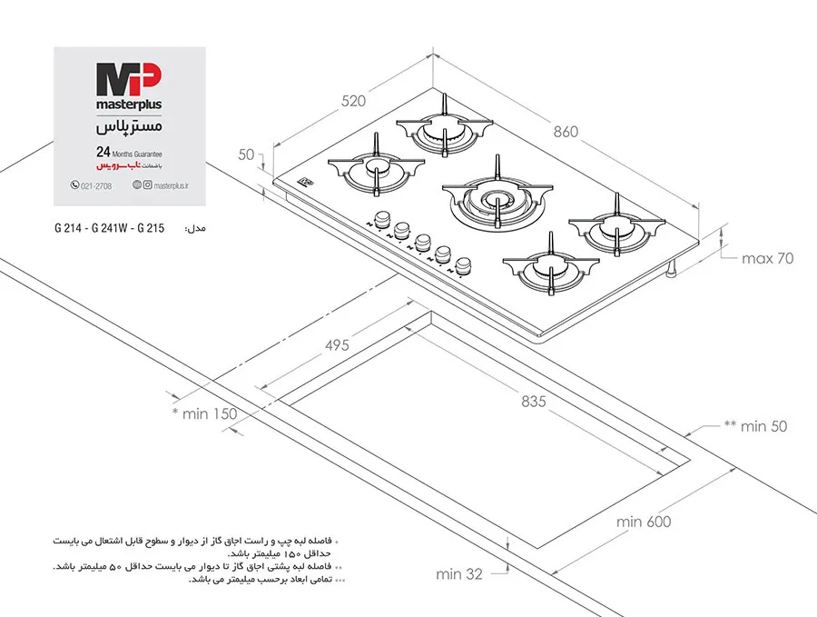 مشخصات اجاق گاز مسترپلاس مدل G215 رومیزی