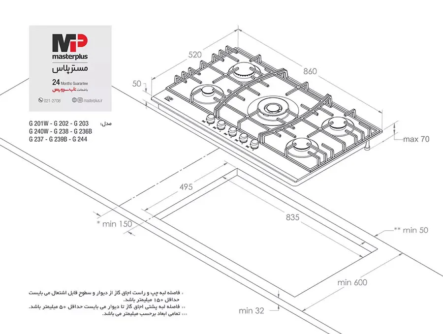 مشخصات اجاق گاز مسترپلاس مدل G236B رومیزی
