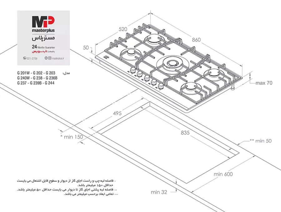 مشخصات اجاق گاز مسترپلاس مدل G237 رومیزی