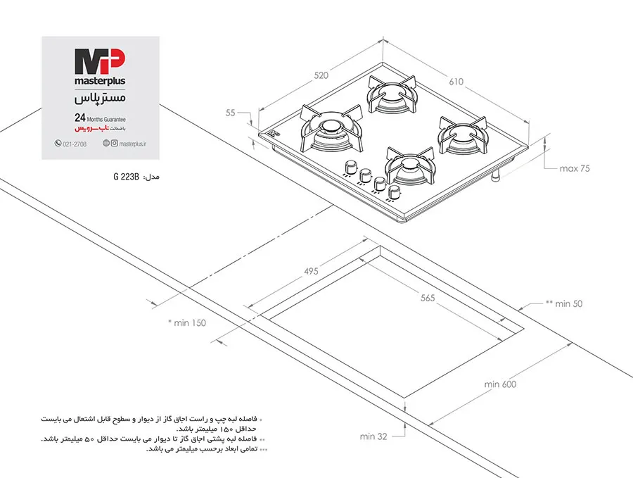 مشخصات اجاق گاز مستر پلاس مدل G223B رومیزی